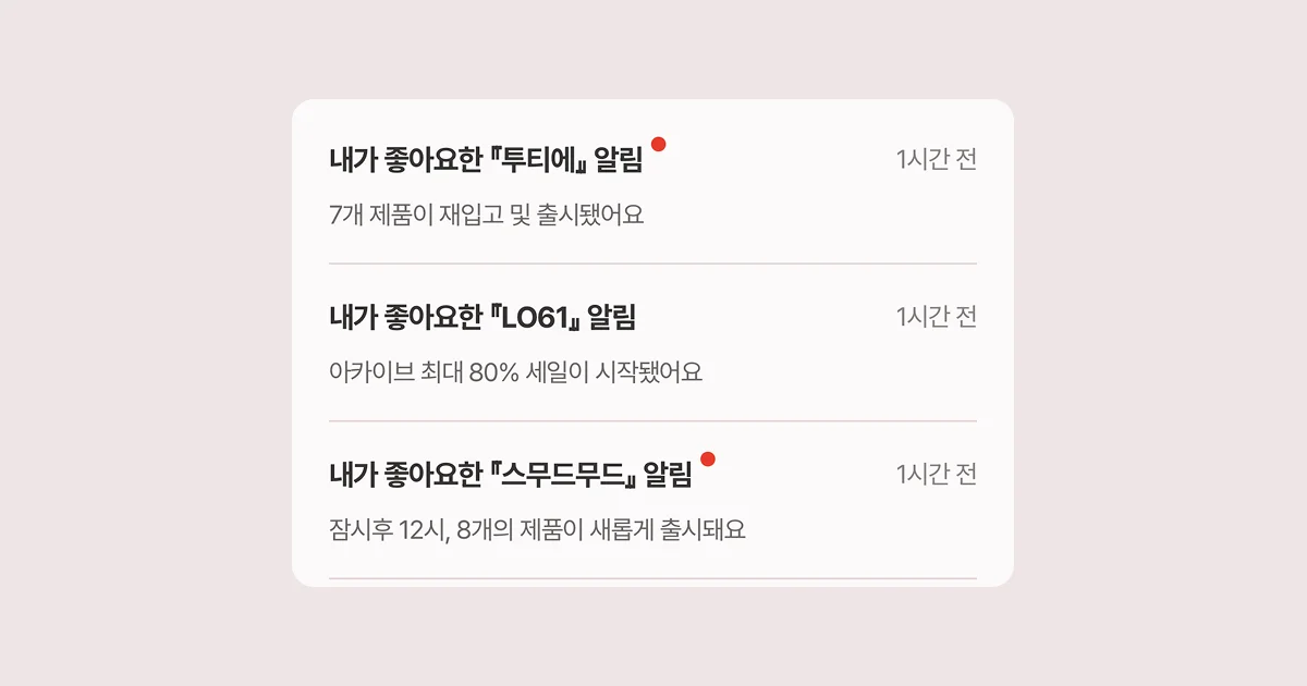 조금만 늦어도 품절되는 인기 브랜드 재입고 소식을 이제 앱에서 바로 확인하세요.