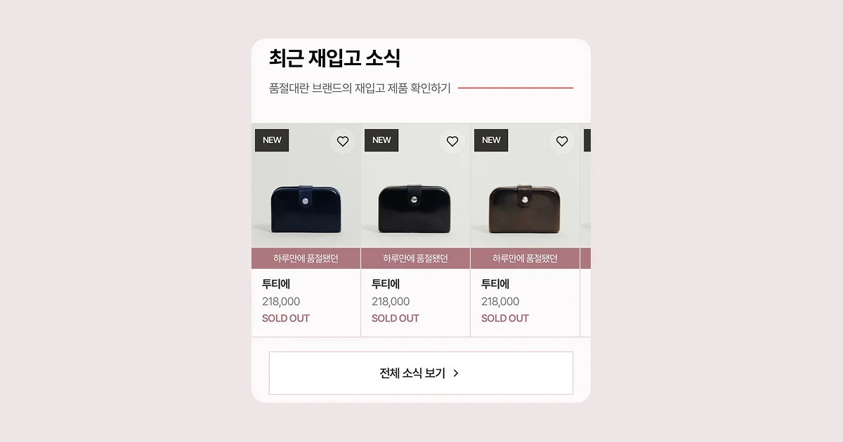 → 재입고가 된다는 것은 품절되었다는 것이고 그만큼 인기가 많은 제품이라는 것이에요. 지금 인기있는 제품과 브랜드들을 한 페이지에서 탐색할 수 있어요