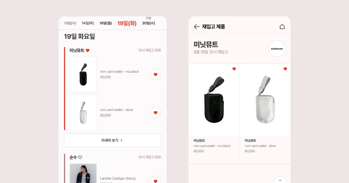 • 브랜드별·날짜별 보기 : 오늘·내일·과거 재입고까지 원하는 날짜로 확인 가능